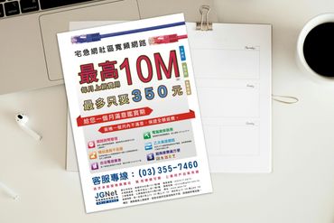 整體設計風格運用鮮明活潑的色調與獨特的網路線元素,不僅吸引目光,也拉近與客戶的距離。優惠資訊清晰易讀,服務內容條理分明,能夠有效傳遞商品重點,進一步強化企業與客戶之間的信任關係。